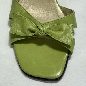 Chic lime green sandals with bow accents. Stylish and comfortable for any event.