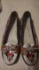 Charming loafers with Minnie Mouse design. Features brown and blue accents. Perfect for casual wear.