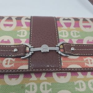 Women's vintage, multicolored, convertible clutch or wristlet by Etienne Aigner. One size. Lots of credit card slots, back zipper pocket. Inside zipper pocket and slots for checkbooks, receipts, etc. Excellent pre-owned condition; barely worn.