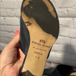 Etienne Aigner Navy Leather Mules with Block Heel Sz 7