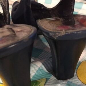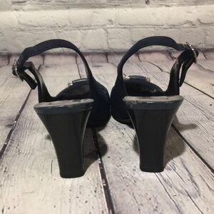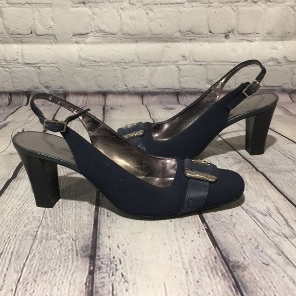 Etienne Aigner Navy slingback heels with silver buckle detail