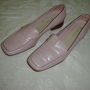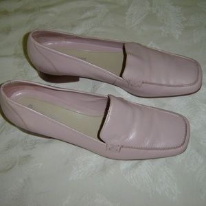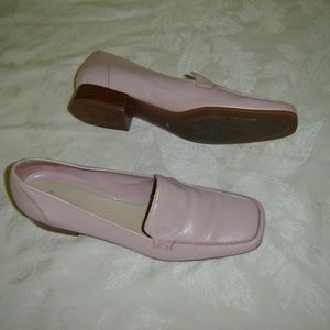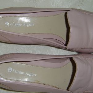 Etienne Aigner pale pink timeless leather loafer. Very versatile - office to country club. Gently used. Very little signs of wear. No scuffs. Heel is perfect. Right shoe has VI on bottom, but not visible and will most likely wear off. See photos for additional details.