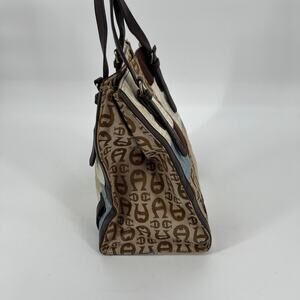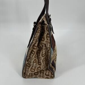 Etienne Aigner Patchwork Satchel Tote Bag Brown Leather Multicolor Logo Fabric