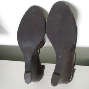 Etienne Aigner "Peep" Womens Brown Faux Croco Leather Ankle-strap Wedge NWOB- 8M