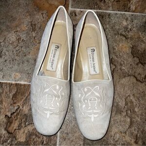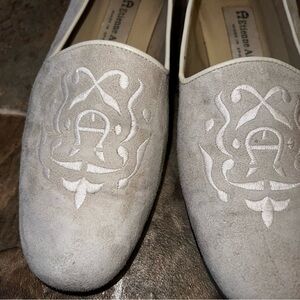 Etienne Aigner Scroll Cream Suede Leather Embroidered Loafers Flats