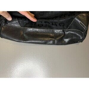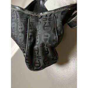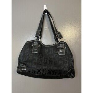 Etienne Aigner Shoulder Bag Womens Black Logo Jacquard Handbag Purse D-Ring
