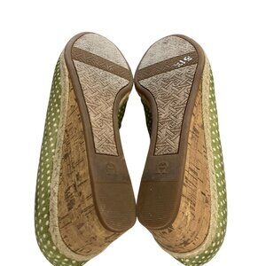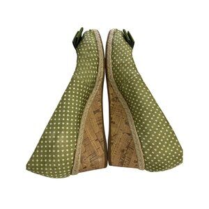 Etienne Aigner Size 7.5M Green Polka Dot Fabric Wedge Peep Toe cork heel Shoes