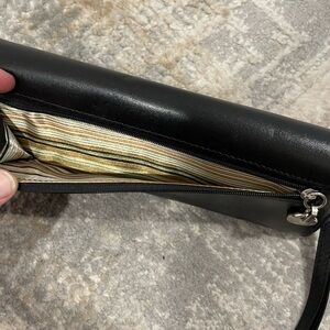 Etienne Aigner Slim Black Leather Wallet Wristlet With Detachable Strap
