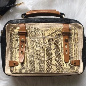 Etienne Aigner Stag box bag top handle handbag MSRP $495 snake print leather bag