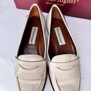 Etienne Aigner Sz 7.5 M Buckingham Leala Alabaster Leather SlipOn Penny Loafer