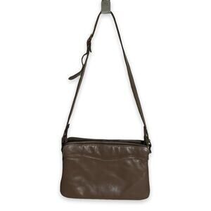 Etienne Aigner Taupe Brown Shoulder Bag Accordian Purse Lots of Pockets