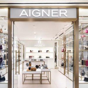 Aigner shoes and handbags are distinguished by luxurious materials, artisanal craftsmanship, multi-functionality, and notable hardware. Enduring hallmarks include the iconic logo–an “A” refined to resemble a horseshoe–and the use of materials such as fine cordovan leathers from Italy and hand-woven textiles
