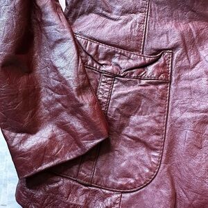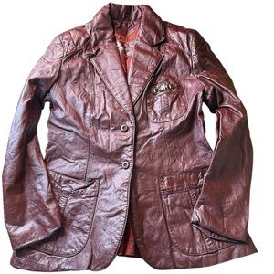 Etienne Aigner Vintage Leather Blazer with Gold Tone Designer Logo Pocket