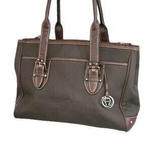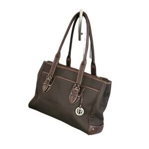 Elevate your style with this classic Etienne Aigner tote bag, crafted from durable brown canvas with genuine leather accents. This versatile handbag features: