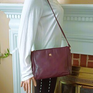Etienne Aigner Vintage Leather Shoulder Bag Classic Oxblood Logo Purse