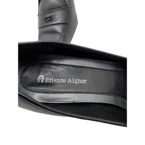 Etienne Aigner Womens Labelle Pumps Black Leather Penny Loafers Shoes Sz 8.5M. In good preowned condition. See pics for any defects. Please ask any questions before purchasing. Thanks
