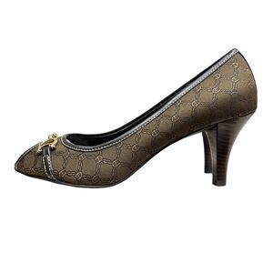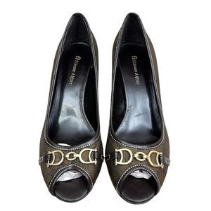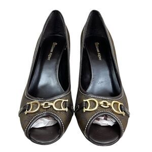 Etienne Aigner Womens Pump Heel Cherie Peep Toe Horse Bit Brown Black Sz 7.5M