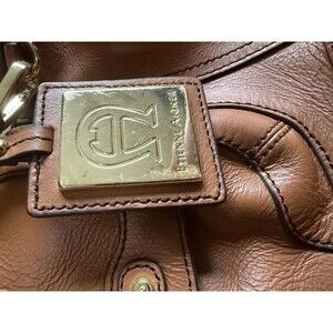 Etienne Aigner Women’s Satchel Purse Cognac Leather Bag Gold Hardware Logo EUC