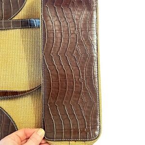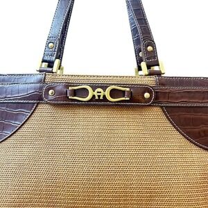 Etienne Aigner Women's Tan Woven Square Tote Bag Crocodile Print