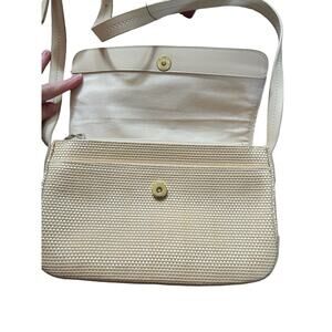 Etienne Aigner Woven Cream Snap Close Leather Strap Crossbody Bag New