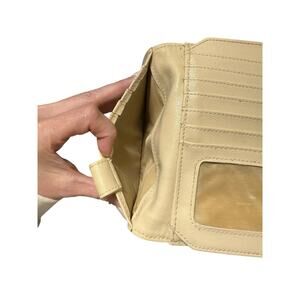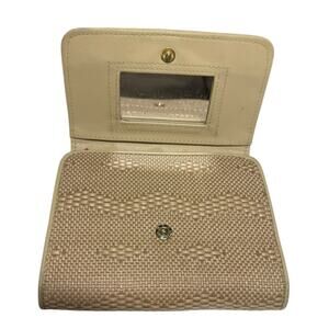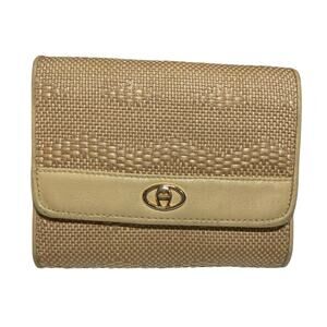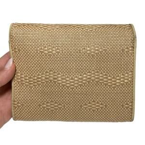 Etienne Aigner Woven Raffia Straw Trifold Wallet Women's Billfold Beige Cream
