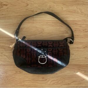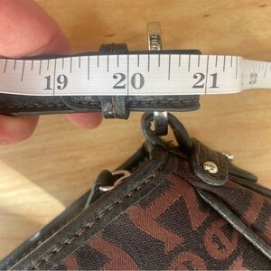 •Dark and Camel Brown Canvas Signature Logo Shoulder Handbag