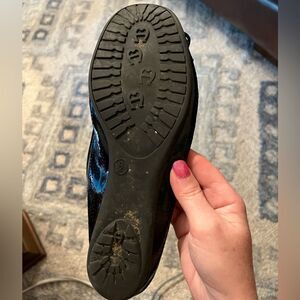 Etienne Aigner black laser cut patent leather ballet flats size 6