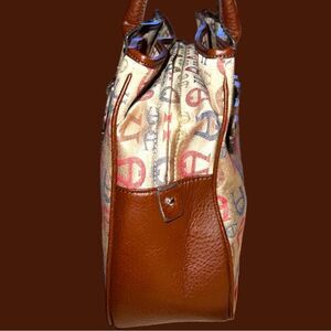 Etienne Aigner cute bag with tan canvas covered with colorful logo!