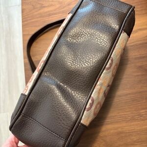 Cute little bag. Fun buckle gives Gucci vibes. Has been stored flat so the sides are a little wonky but it will straighten out with proper storage. Not leather but still a cutie.