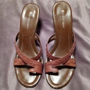 Etienne Aigner 8.5 mule great condition a lot of wear left Gently Loved tow strap a little scuff on the left toe as shown in the picture otherwise excellent condition.