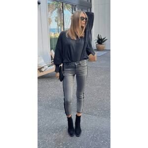 A signature style from Etienne Marcel, these edgy skinny jeans combine elevated denim with modern streetwear appeal. Crafted in a soft grey wash with contrasting black zipper detailing along the hips, these jeans are both flattering and fashion-forward. The mid-rise silhouette and cropped ankle-length cut make them perfect for pairing with boots or heels, while the side zips add a distinctive moto-inspired touch. These are the ultimate jeans for elevating your off-duty wardrobe or adding attitude to everyday looks.