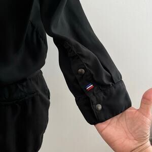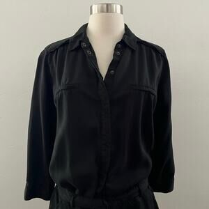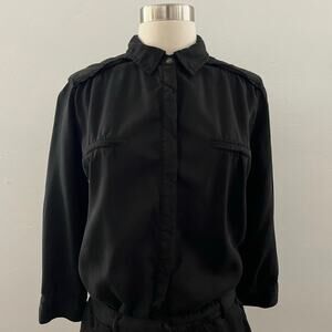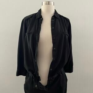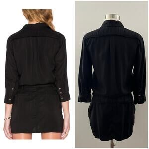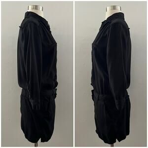 Etienne Marcel Military Utility Shirt Dress 3/4 Sleeve Mini Pockets Black Small