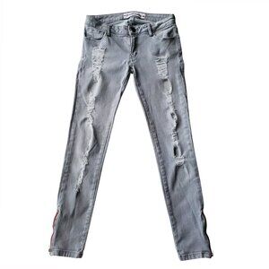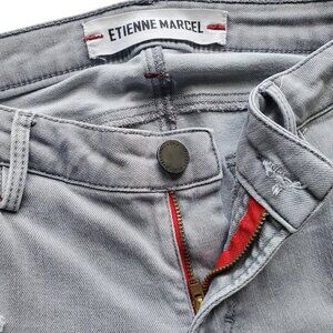 Etienne Marcel Skinny Jeans Grey Distressed Zed Side Zippers Size 26