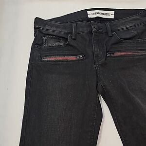 Etienne Marcel jeans black size 26 red zipper detail EUC