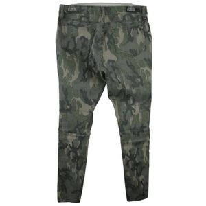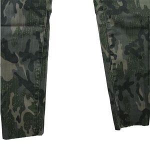 Excellent condition! Stretchy camo skinny jeans with red zipper front pockets. Raw cut hemline.