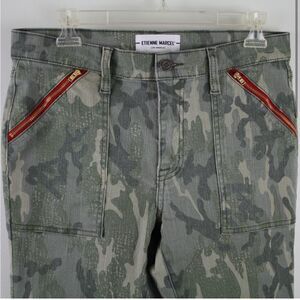 Etienne Marcel Camo Skinny Jeans Red Zipper Pockets Raw Cut Hemline Size 30