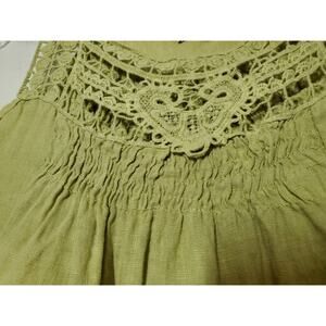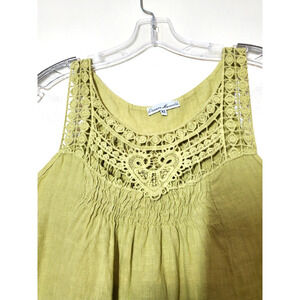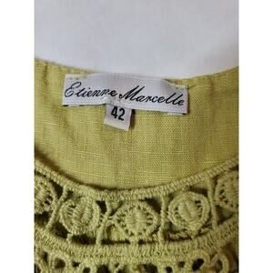 Etienne Marcelle Dress Womens 42 100% Linen Made In Italy Chartreuse Crochet