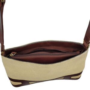 Etienne Aigner Crossbody Bag Country Cottage Core Basket Weave Leather Trim Tan