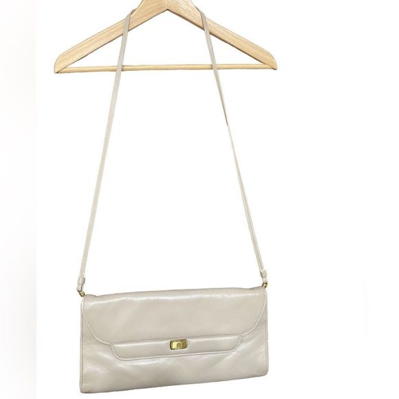 Etienne Aigner cream taupe color leather handbag purse with gold accents