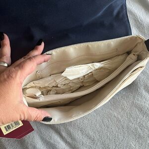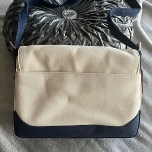Etienne Aigner Fanvy Navy & Off-white Canvas Shoulder Handbag. Brand new with tags. Flap with Snap front closure. Multiple pockets with zippers inside. Outside pocket on bag. Adjustable strap. Perfect condition.