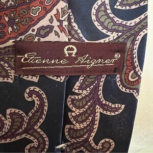 Etienne Aigner Necktie Navy Blue Paisley Silk. 57” length. 3.5” at widest point.