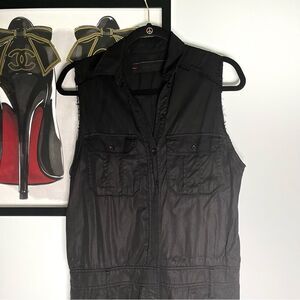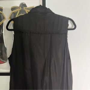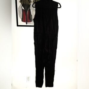Chic etienne marcel sleeveless jumpsuit. Neutral black color will pair well with any accessories. Great preowned condition with only one small thread pull as shown. Easy fix for someone handy with a needle and thread. Lying flat armpit to armpit approx 17.5” across and waist approx 16” across and inseam approx 29”. All measurements are approximate