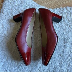 Etiennne Aigner: "Strada" Women's Vintage Red Matte & Patent Leather Square Toed Heels Size 7.5
