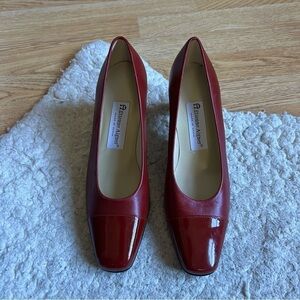 Etiennne Aigner: Women's Vintage Red Matte & Patent Leather Square Toed Heels