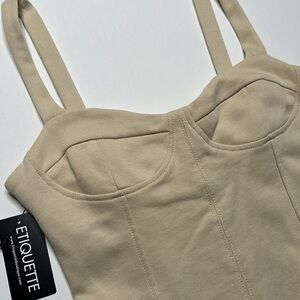 Etiquette cream bustier. French terry fabric. Elastic back. Adjustable straps. Womens size Medium. New with tags, never worn.
