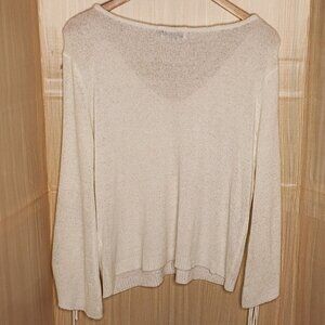 Etiquette women’s white soft textured lace up bell sleeve cuff sweater medium Gently used condition. Measurements are: 24” sleeve, 26” from shoulder to hem, and 26” from armpit to armpit.