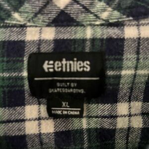 Etnies Skateboarding Brand Blue Green Long Sleeve Plaid Flannel Shirt XL
