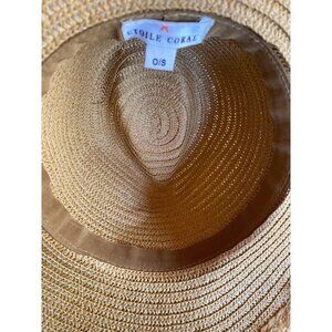 Etoile Coral Straw Sun Hat Black Ribbon Trim One Size