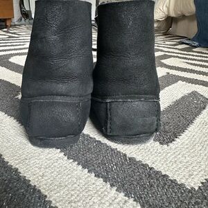 Excellent condition. Barely worn. They run a bit small. I’m a 9.5 and they are snug. Super soft and warm.