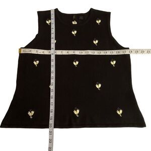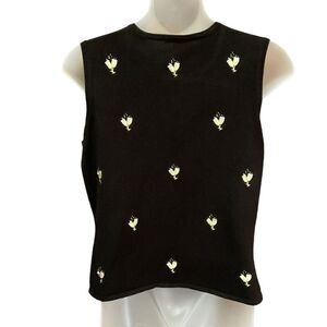 Knit Tank Top Round Neck by Etoile Embroidered Champagne Glasses in Yellow Black Sleeveless Women Size Large